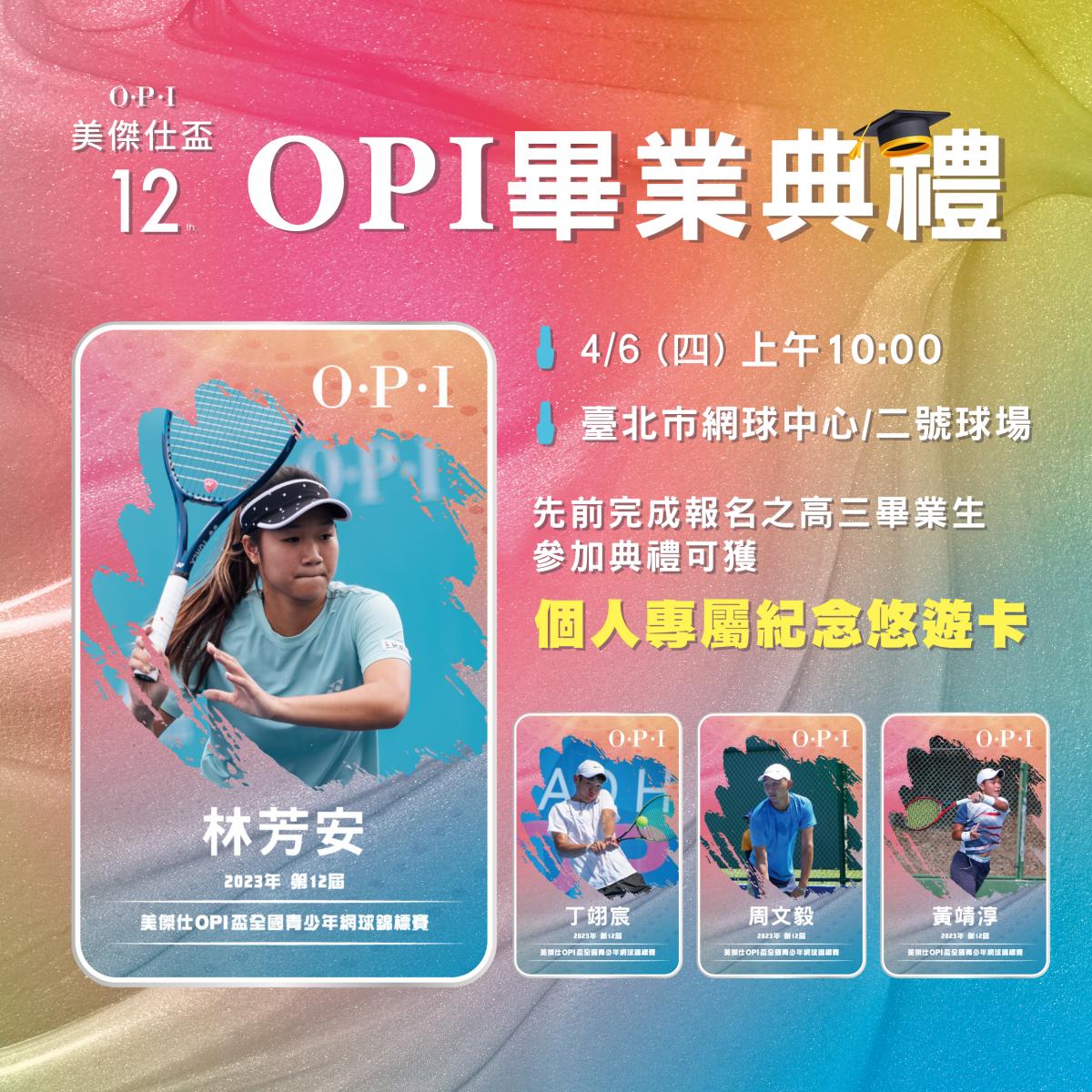 2023年首度推出冠亞軍專屬的「獎牌悠遊卡」,兼具實用與紀念價值。更舉辦「OPI畢業典禮」,邀請高三畢業生一同共襄盛舉,所有完成報名活動之高三畢業生,皆可獲得個人專屬的客製化悠遊卡乙張。藉由「OPI畢業典禮」,象徵選手和OPI盃一同成長,期望讓高三畢業生在最後一次參賽時留下難忘回憶,並帶著祝福啟程,邁向人生下一個階段。