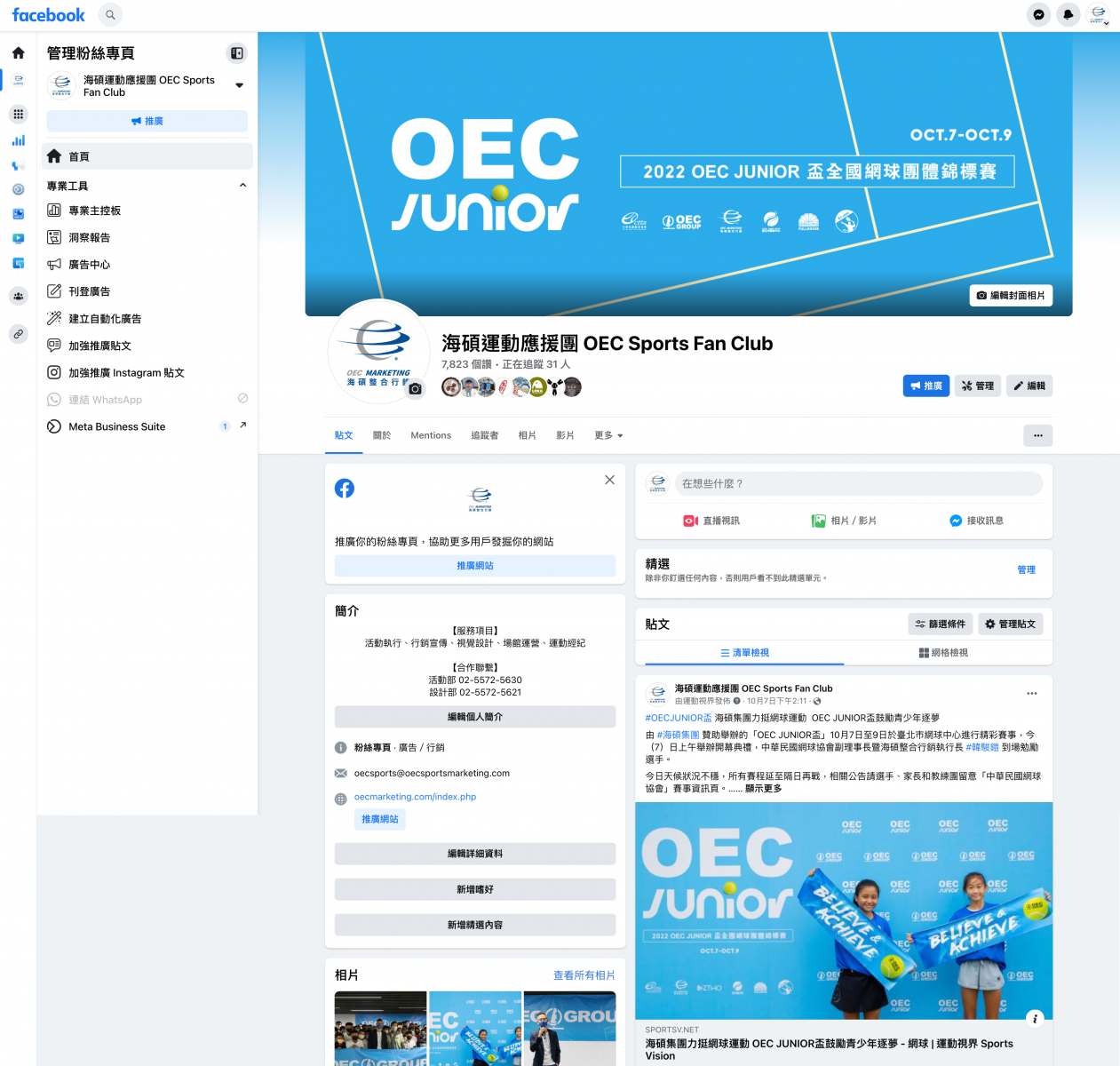 海碩集團長年投入社會公益,積極推廣網球運動,過去十多年舉辦「海碩國際網球系列賽」更是台灣網壇年度盛典。海碩集團自2022年跨足青少年賽事,舉辦「OEC JUNIOR盃全國網球團體錦標賽」,目的為向下扎根,推展基層網球運動,培養青少年團體合作精神,幫助更多熱愛網球的青少年踏上逐夢之路。2023年賽事移師苗栗竹南,盼能帶動全臺各地的基層網球風氣。